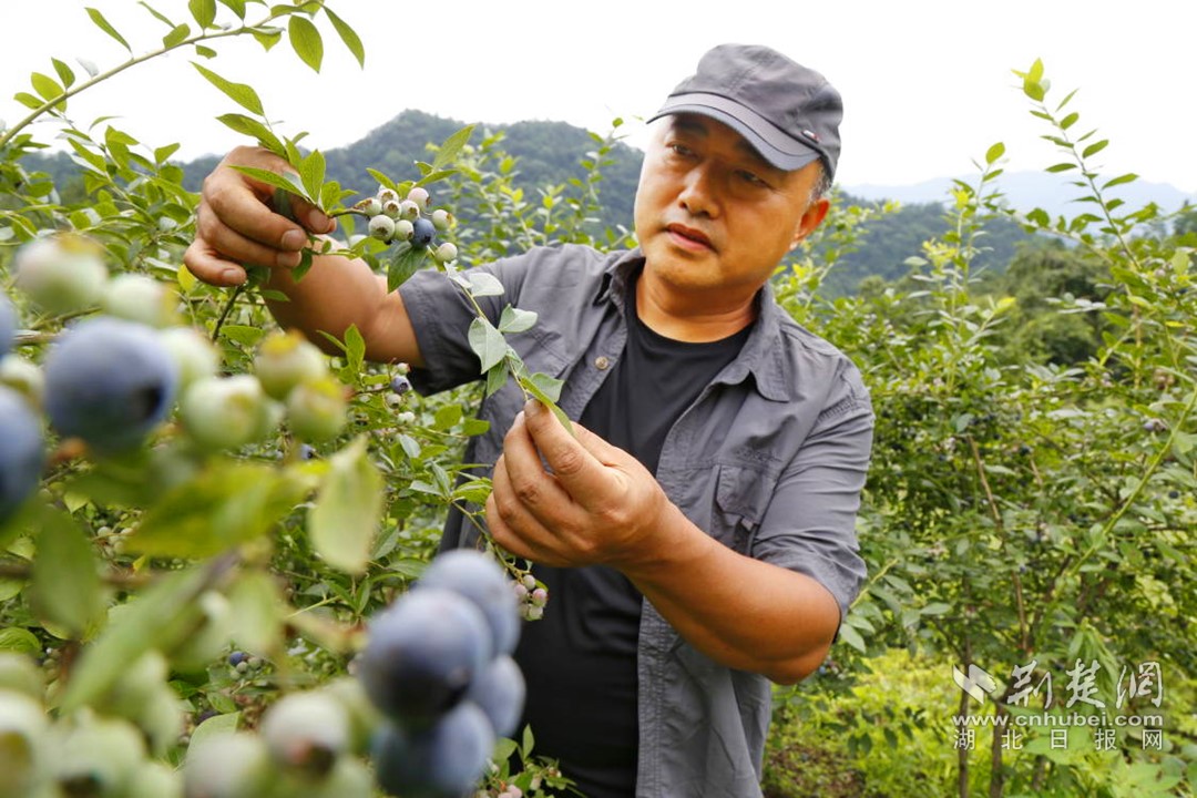 退伍老兵王雄和妹妹携手创业,在一片荒山中打造“蓝莓部落”。袁选国 摄