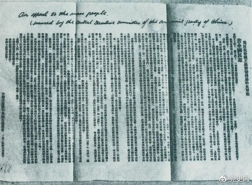 1925年6月5日 中共中央发表《告全国民众》,号召全国人民奋起,同帝国主义的暴行作斗争。