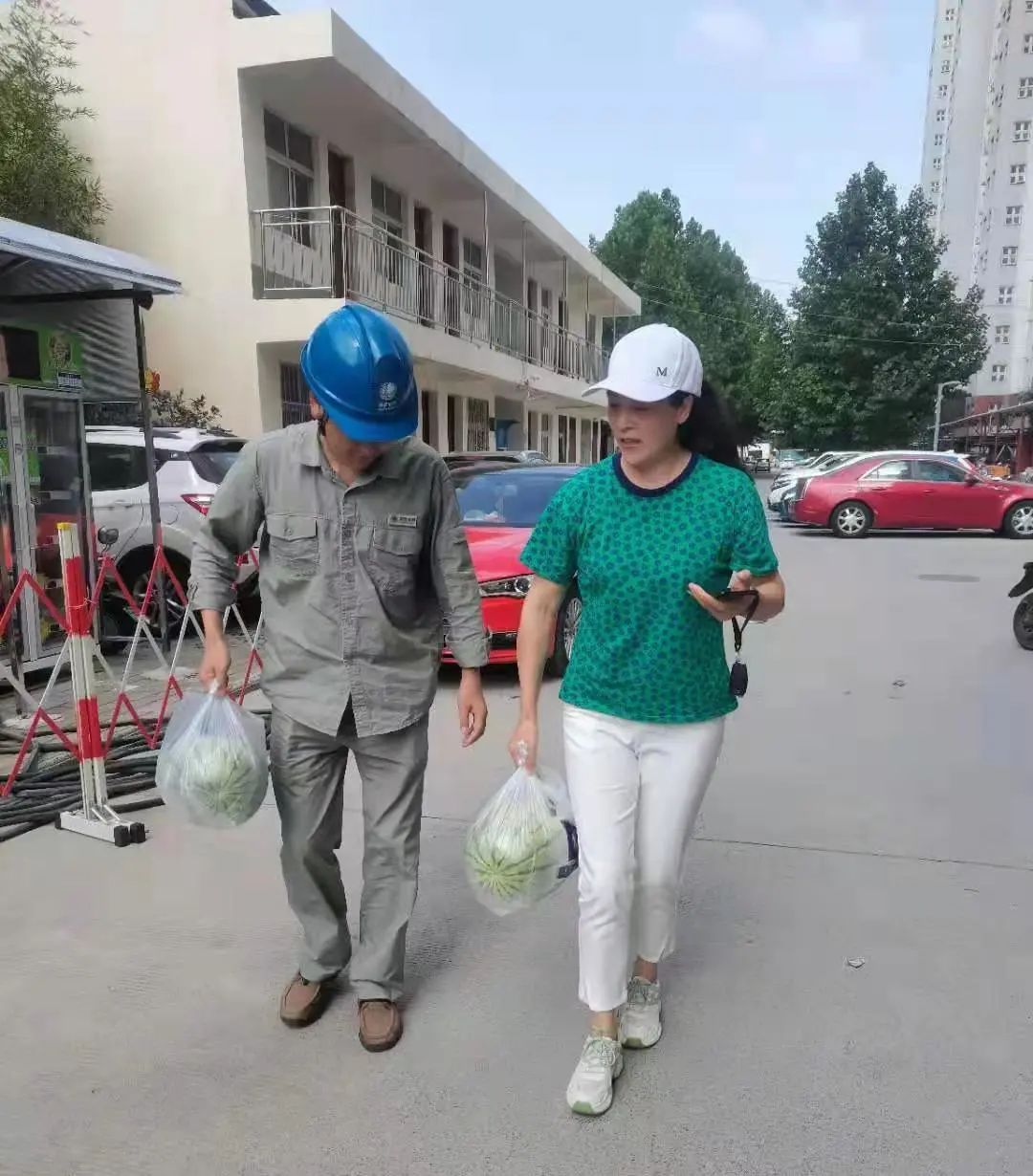 7月26日下午,袁丽驱车10多公里,带着西瓜等消暑降温水果,来到了国网兴山县供电公司工作的郑州市管城回族区石化路铁道凤凰家园小区,看望谭文国、唐海峰,杨军三位工作人员。老乡见老乡,大家都感到格外亲切 。