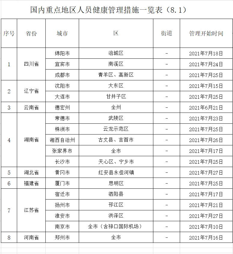疫情防控提醒(2021年8月1日更新):请以下地区(如图)来宜返宜人员,提前24小时主动向所在社区(村)、单位报备相关情况,并提前了解防疫要求;来宜返宜途中,请做好个人防护;来宜返宜后,应主动配合我市相关防控措施。