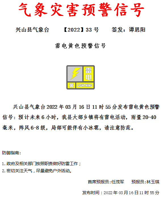 兴山县气象台发布雷电黄色预警信号