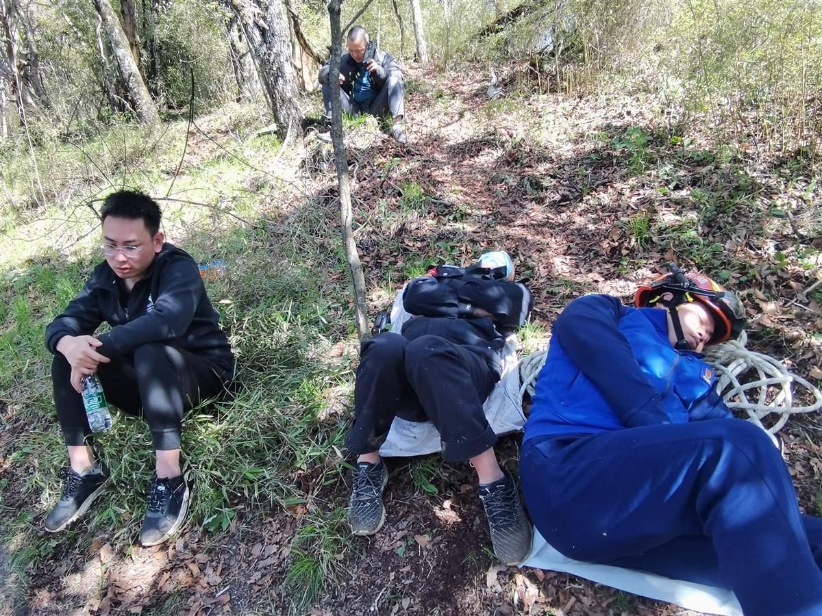 经过披荆斩棘,5小时后,救援人员终于到达两人约定的汇合地点。为确保安全,大家按照既定方案,决定等到日出时,分四组围绕汇合地点展开大范围搜寻,并重点对半径300米范围内的山沟、悬崖等处搜寻排查。