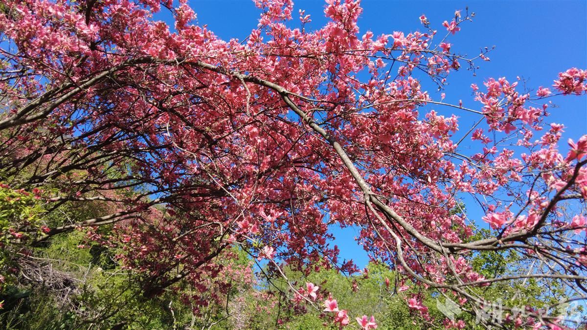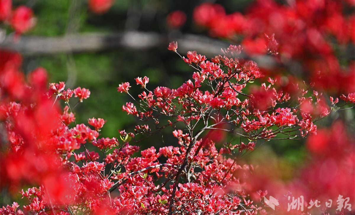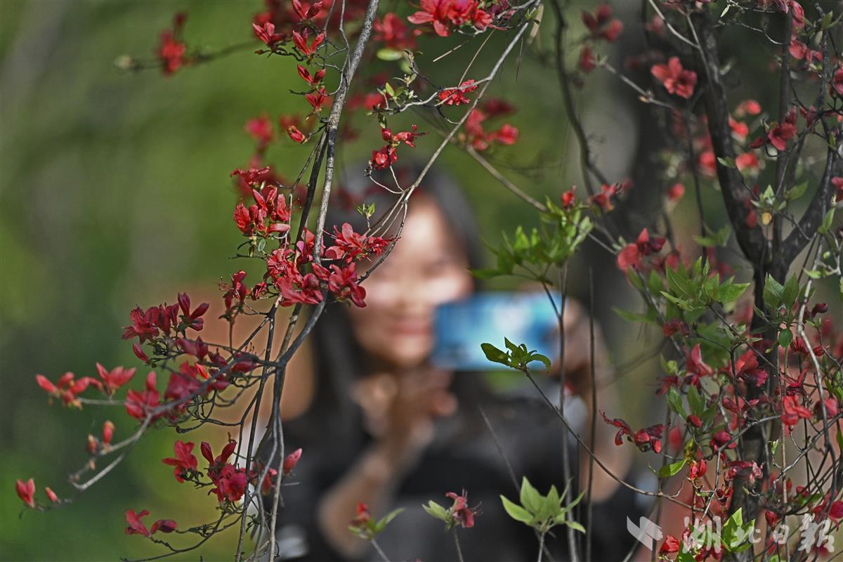 5月5日,游客兴致勃勃地登上兴山县海拔1600多米的仙侣山,一睹各色杜鹃花竞相开放美景。满山各色杜鹃花此时进入盛花期,杜鹃千姿百态,红色的豪情奔放,紫色的淡雅清香,它们簇聚枝头,仪态万千。