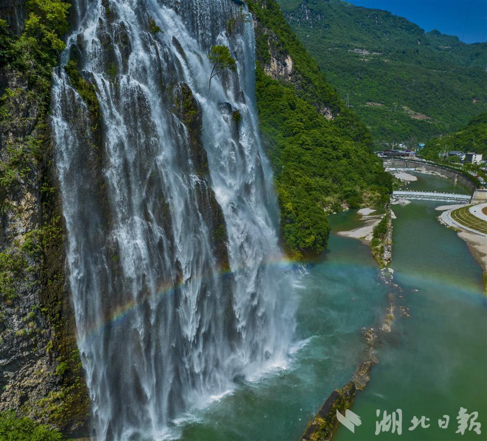 山雾缭绕中,一道飞瀑奔涌而下,阳光映照下形成一道美丽的彩虹,兴山县高岚大瀑布犹如仙景。据了解,兴山县高岚河水利风景区入围为国家水利风景区高质量发展典型,该县域内有大小溪河156条,香溪河和凉台河两大水系横贯全县,水能资源丰富。
