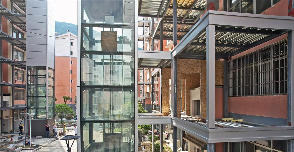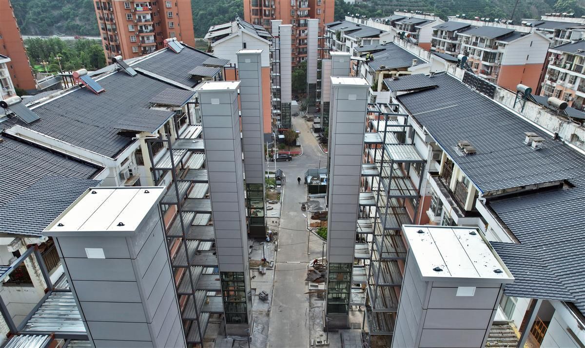 5月7日,在宜昌市兴山县县城老旧小区改造二期项目兴发家园电梯加装工程项目现场,50部电梯正在同步进行加装施工,预计今年6月30日前将全部建成交付使用,“旧改+增梯”,“一键直达”让居住在无电梯楼中的居民不再有出行爬楼难的困扰。宜昌市既有住宅加装电梯工作已经走上快车道,今年将全力推进加装电梯工作,全市将完成既有住宅加装电梯200部,进一步提升市民生活质量。