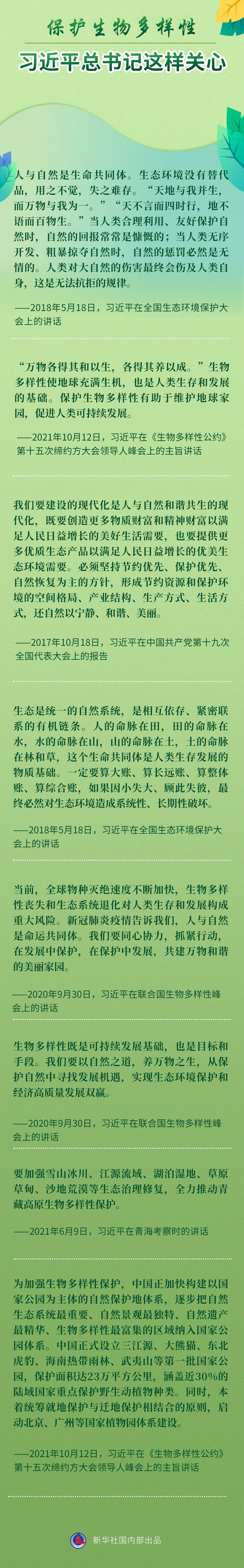 习近平总书记站在中华民族永续发展的高度,从坚持人与自然和谐共生、统筹山水林田湖草沙系统治理、共同构建地球生命共同体等方面对保护生物多样性进行了精辟的阐释。