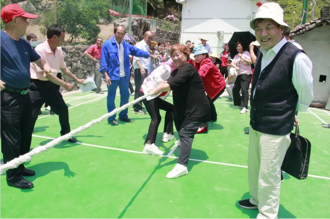 随后,举着乒乓球代表队、篮球代表队、拔河代表队等10支队牌的运动员在主持人万鹏的口令下整齐入场,文体运动会正式开幕。歌舞、快板、九子鞭等10余个本土传统文化节目一上场,就赢得掌声阵阵,接下来大家都铆足了劲,跳绳、乒乓球、篮球、拔河、象棋、羽毛球等比赛项目毫不含糊,因腿伤还没恢复的黄德俊在女儿的搀扶下,拄着拐杖在各个比赛场转悠着观看,助威加油。