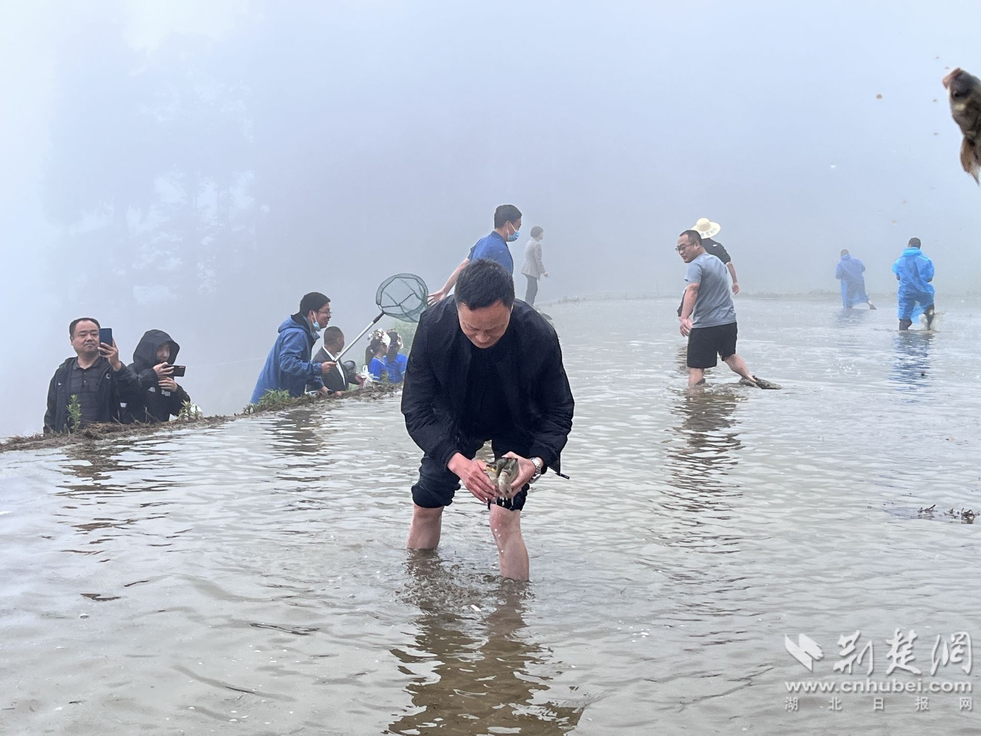 “耶,抓到了,这条真大!”趣味十足的稻田摸鱼同样吸引了大家踊跃参与,“这是我们村第二次举办插秧节,比往年搞得更隆重,特别是这个摸鱼,蛮有意思”,50多岁的张阿姨说。