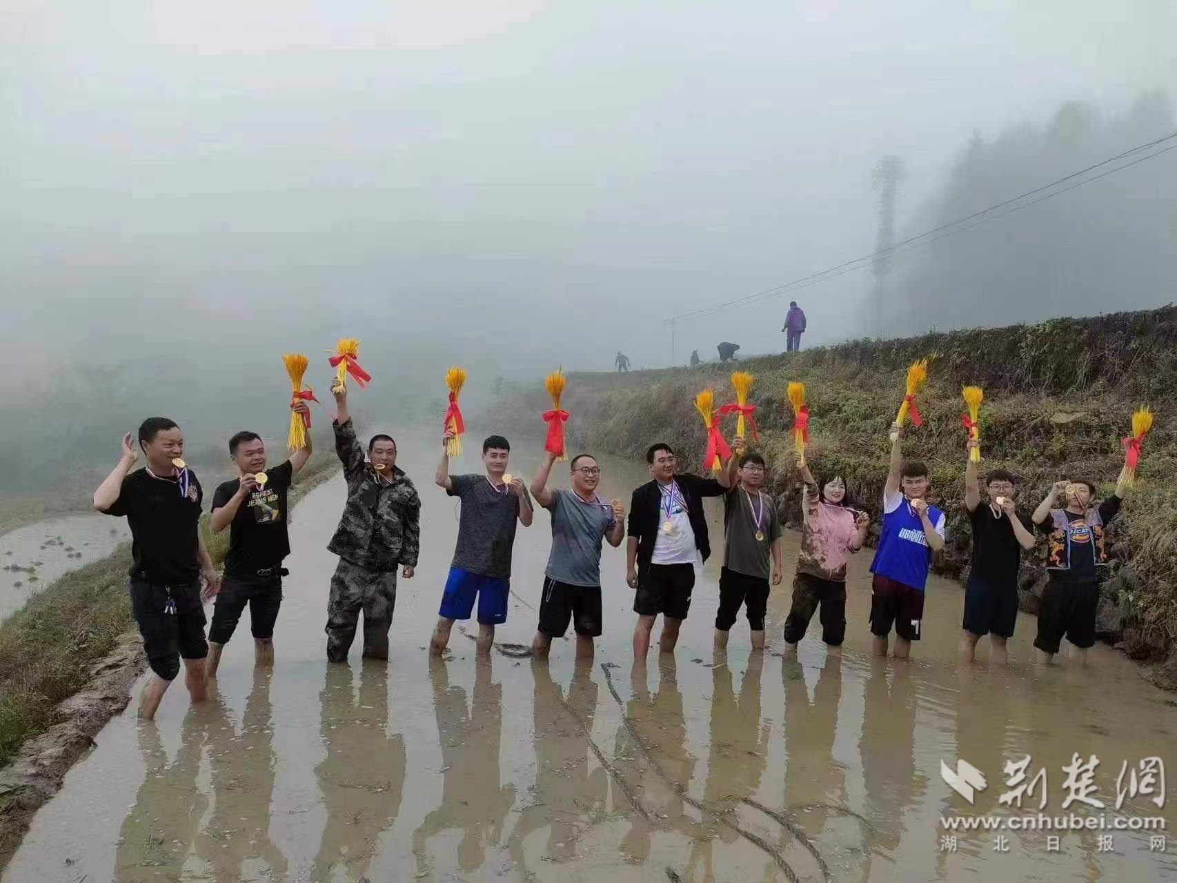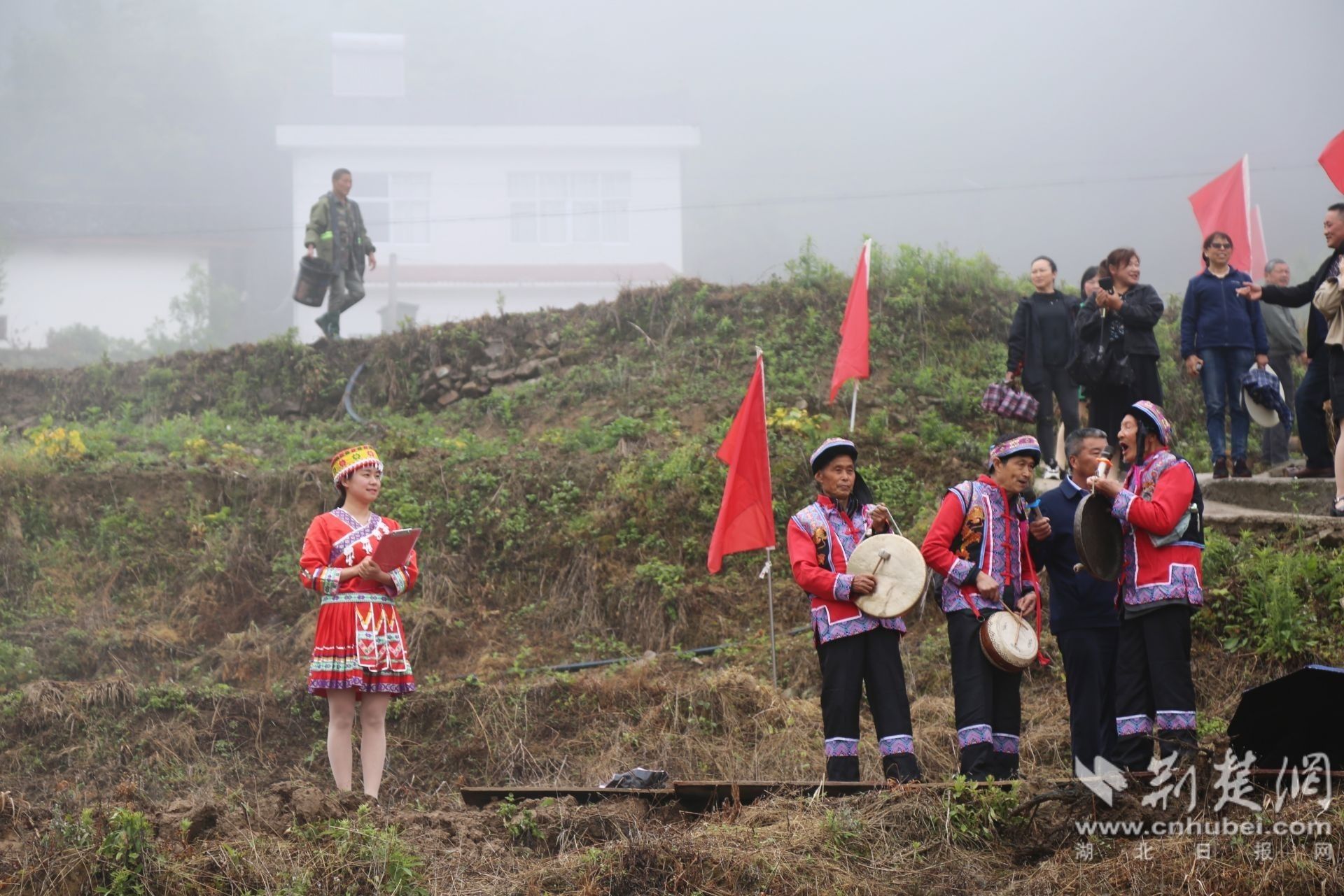 活动在薅草锣鼓声中拉开帷幕,身着土家服饰的阿哥幺妹们,在稻田里跳起摆手舞,唱着特色山歌,欢迎远道而来的游客。