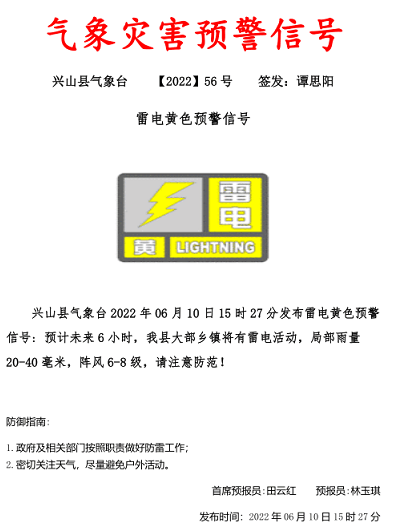 兴山县气象台发布雷电黄色预警信号