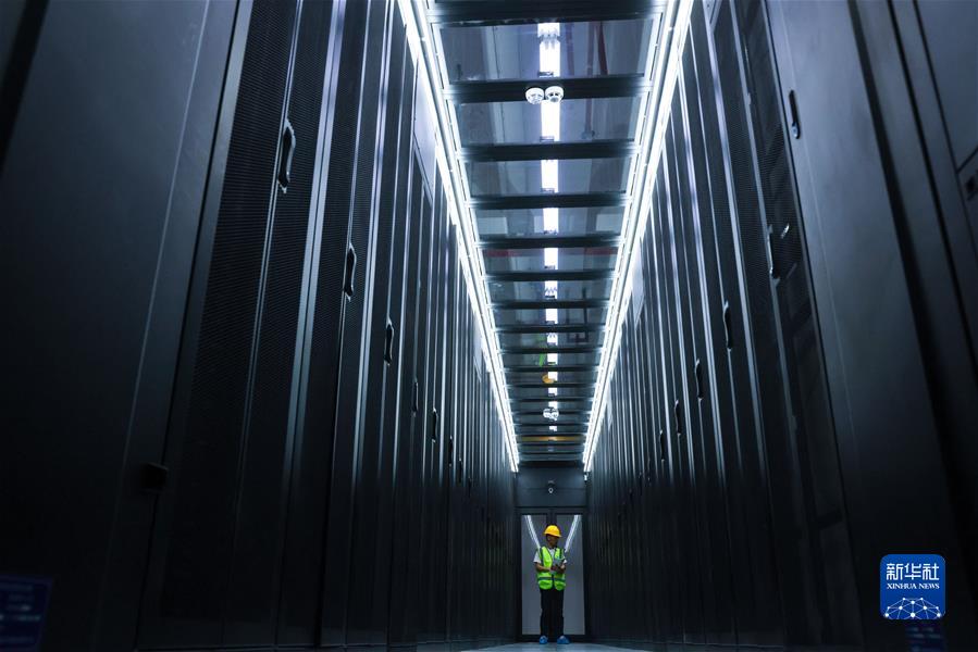 工作人员在中国移动贵阳数据中心机房内巡检(5月24日摄)。新华社记者 欧东衢 摄