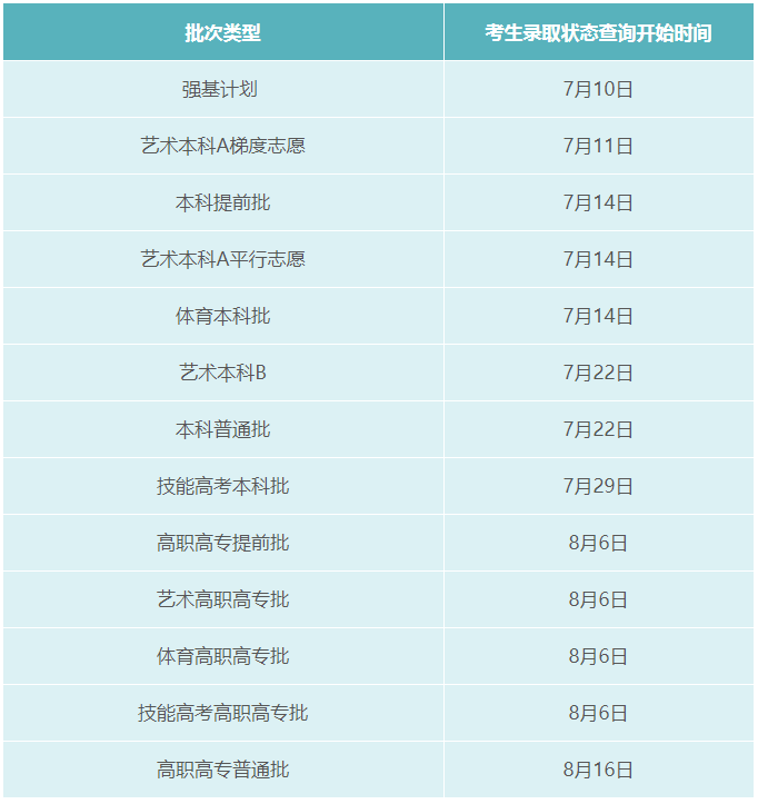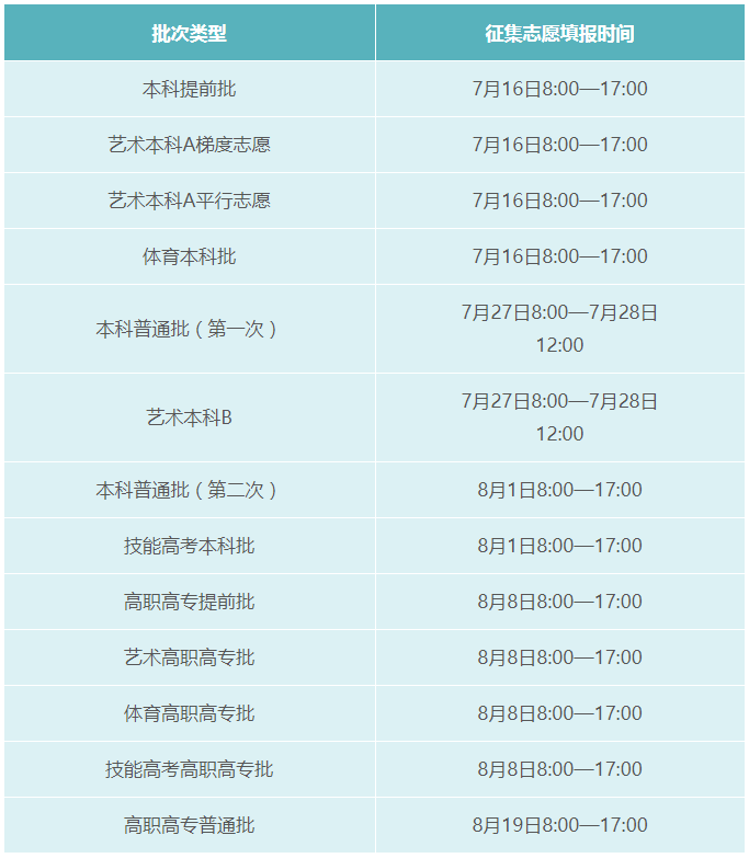 湖北省2022年普通高校招生录取各批次考生填报征集志愿时间表