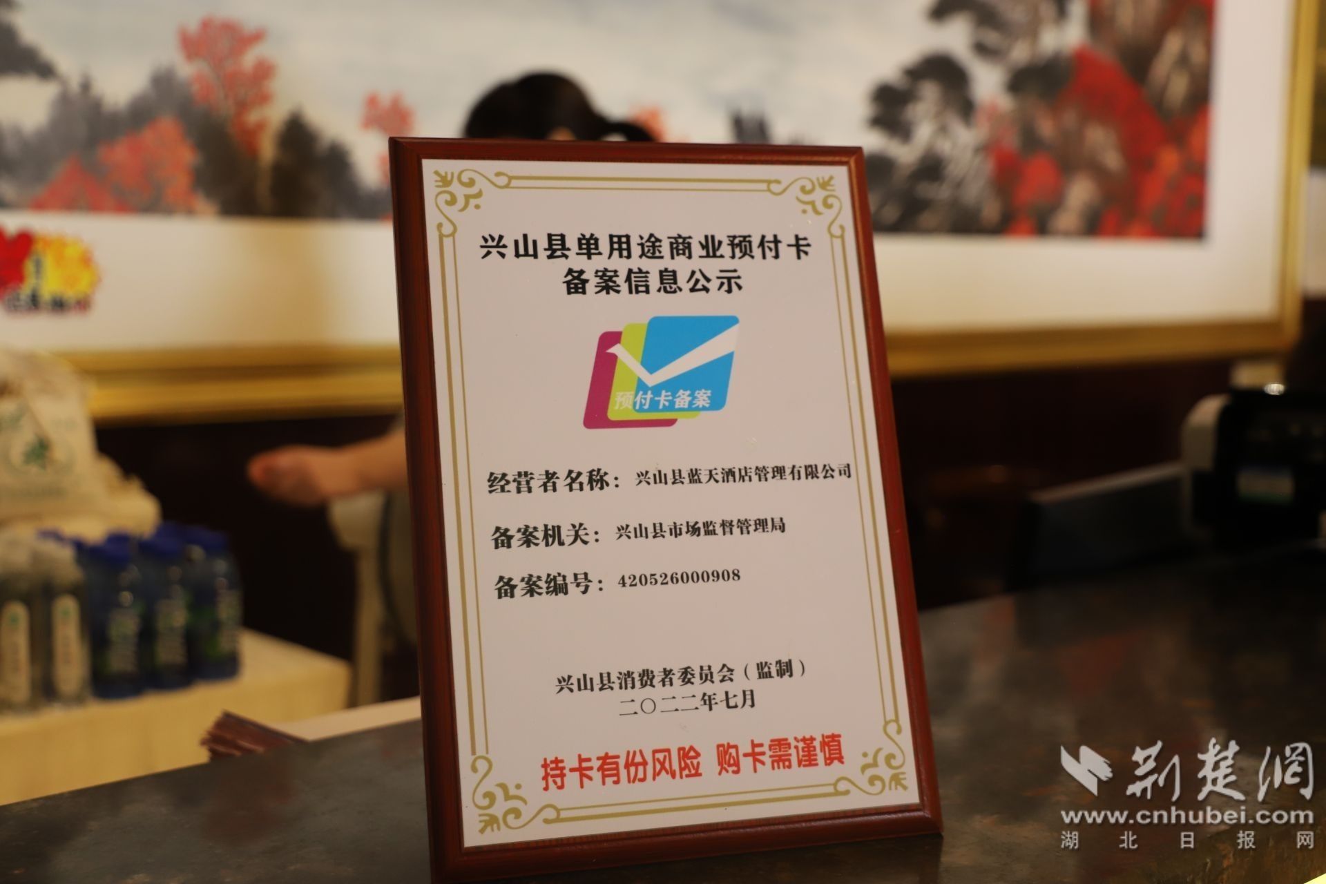 “有了这个单用途商业预付卡备案信息公示牌,会有更多的消费者到在我们这里安心、放心消费”,兴山县蓝天酒店管理有限公司王文元总经理笑着说道。