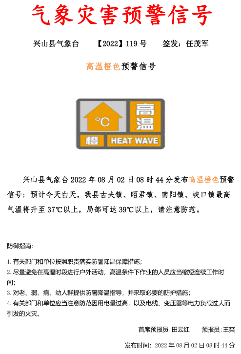 兴山县气象台发布高温橙色预警