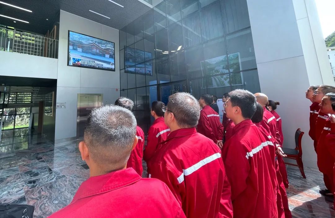 在树崆坪磷矿,矿山员工自发来到安全管控中心的大屏前,集中观看直播。直播用了四分钟的时间,以兴发集团转型升级,打造绿色智慧矿山,发展飞地经济为例,详细介绍了兴山在在践行“绿水青山就是金山银山”两山理论的生动实践。自己的家乡上了央视,大家都看得聚精会神,内心激动万分。
