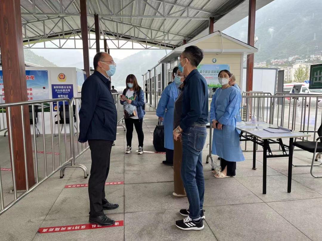 9月20日下午,古夫镇党委书记熊嵬到高铁站指导出站口疫情防控工作。进一步压实疫情防控责任。