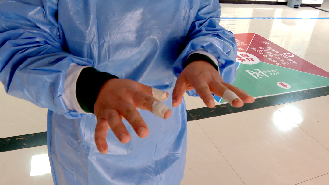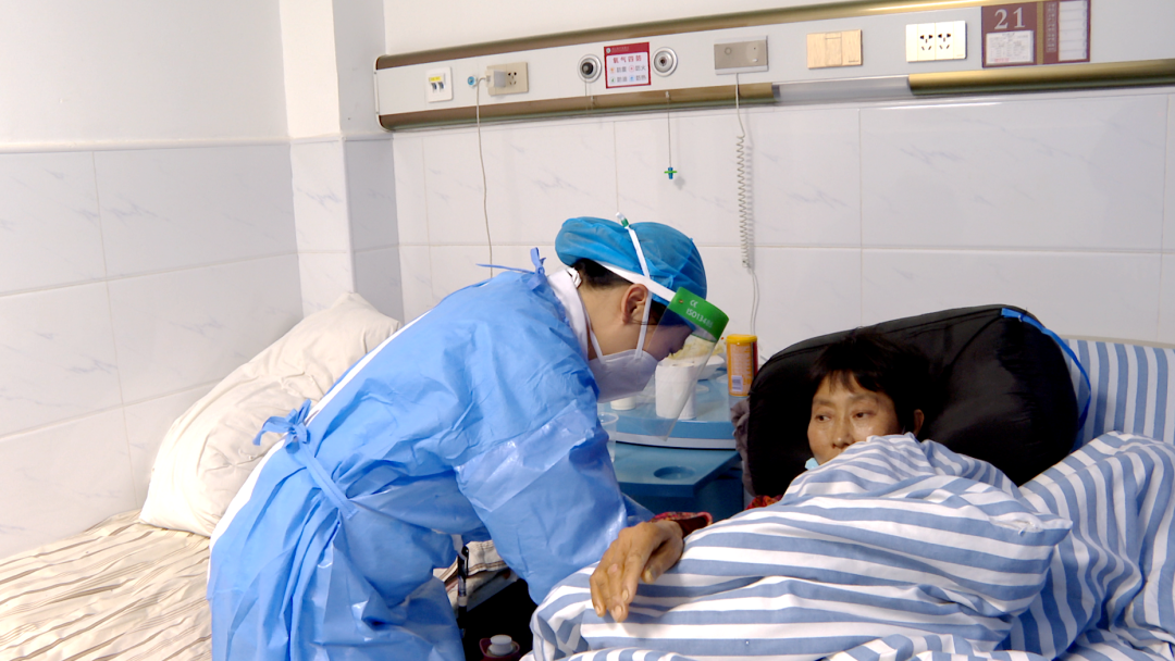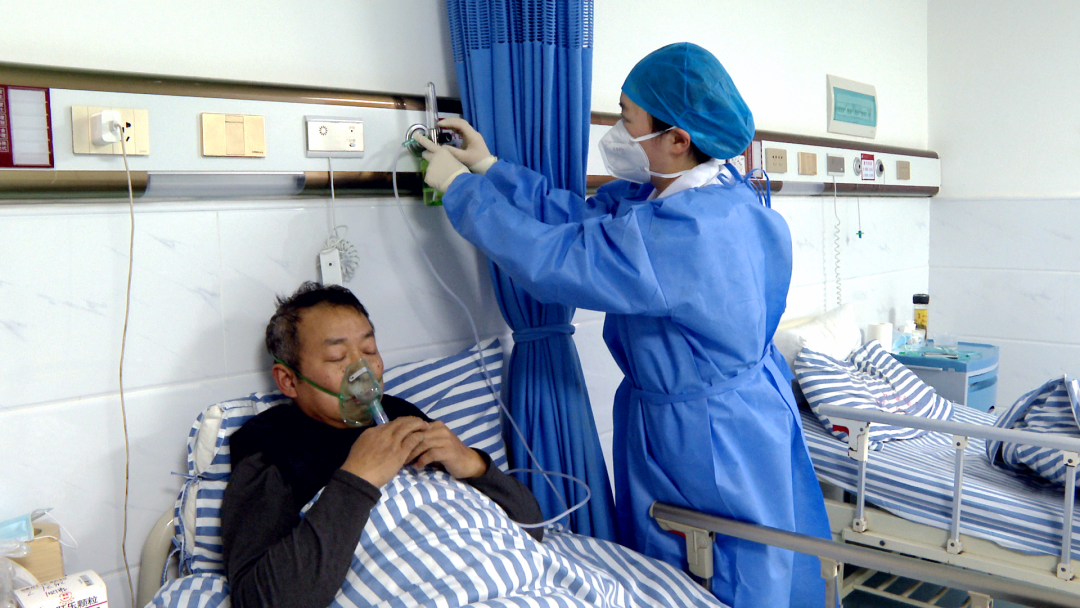 县中医院内二科原本是收治心脑血管疾病患者的科室,随着新冠病毒感染人数增多,目前已经收治了41名新冠病毒患者。科主任郭崇高的父亲也因为感染新冠病毒引发基础疾病住进医院,在这个特殊时期,郭崇高白天带病坚守岗位救治患者,晚上才能挤出一点时间来陪护自己的父亲。兴山县中医医院内二科主任郭崇高说:“其他科室的人员也一样,都在带病坚持工作,现在各个科室的压力都很大,但每个人都坚守岗位,减少患者的痛苦,希望这波疫情能够早日结束。”