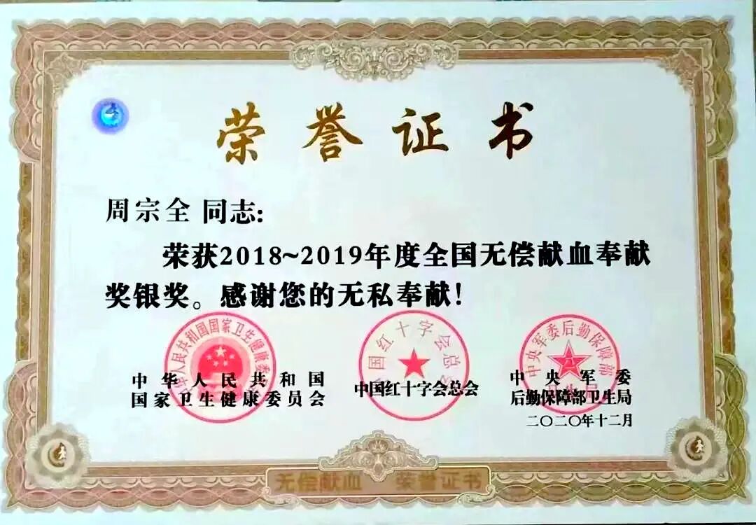 周宗全对无偿献血的执着,赢得了乡邻的敬重,村里好人好事、孝老爱亲的善举不断涌现,也带动更多的人加入无偿献血的队伍。