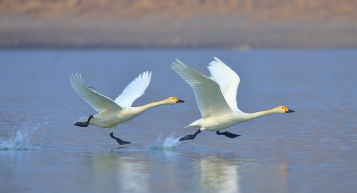小天鹅主要以水生植物的叶、根、茎和种子等为食,通常8月末9月初离开繁殖地前往越冬地,于11月到达我国南部越冬地。对栖息地环境要求极高,喜欢水质良好、水域开阔、水生植物丰富并有浅滩的环境。