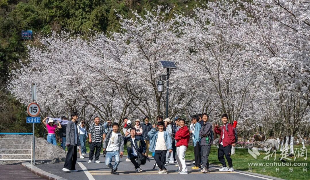 在国家4A级景区高岚大峡谷,朝天吼的樱花早已风靡朋友圈。3月18日,“春在朝天吼、浪漫花溪游”朝天吼赏花节暨职工四季游春季线路发布仪式在这里举行,千名游客漫步浪漫花溪,踏青赏樱,乐享盎然春光。樱花丛中舞昭君、寻美朝天吼摄影大赛、赏粉色樱花·话红色国防团建等活动持续升温,让景区周边的农家乐生意火爆。