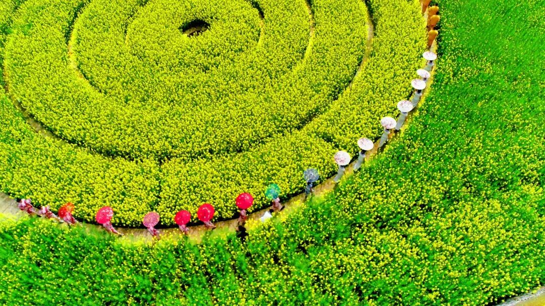 紧挨油菜花海的紫竹园农家乐老板訾友兰正忙着划薄膜,准备为门前的西瓜田覆膜。“到了夏天,客人吃完饭再来个自家种的西瓜也挺不错的,”訾友兰边忙活边介绍,“昨天从荆州来的三大桌客人在我这里吃中饭,我还请了帮手,其余打电话预订的都回绝了。”2022年受疫情影响,紫竹园农家乐全年收入才一万多元,而今年仅3月份前来赏花吃农家饭的,收入就有两万多元。