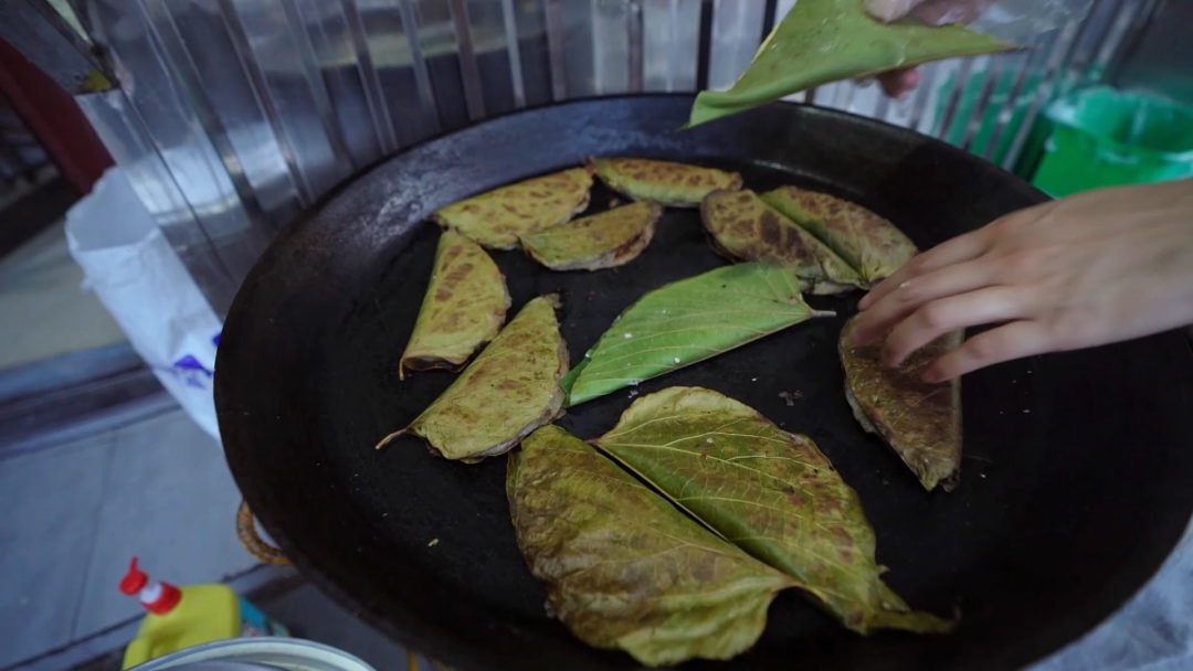 桐叶是油桐树的叶子,叶片肥大,富含油脂散发出淡淡的叶香,烹制粑粑的时候,不用另外放油,纯天然山野味道,吃起来除了有桐叶特殊的清香,嚼起来有劲道,征服人们的胃口。