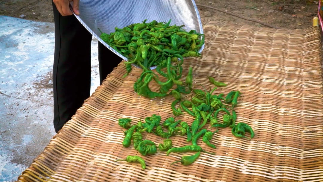 在制作白辣椒中最重要的环节是晾晒,必须选好天,最好是大晴天,须一气呵成,碰上雨天,辣椒会烂,所以一般选在三伏晴天制作。