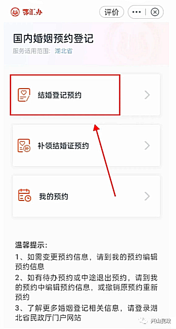 兴山县民政局婚姻登记处现已开通婚姻登记网上预约通道。申请人可通过湖北省政务服务网、鄂汇办APP网上预约,并按提示上传婚姻登记必需的材料。