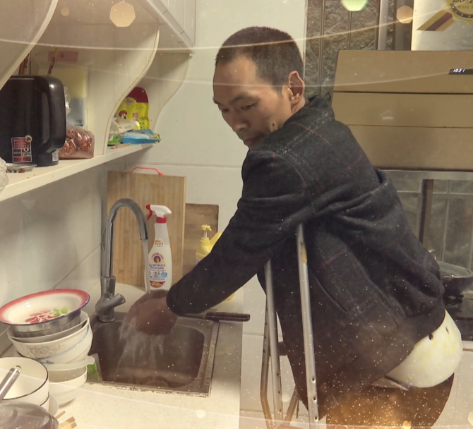 黄道龙家中,干净整洁是留给记者的第一印象,很难想象,是一个拄着拐杖的汉子所做的事情。不能顺风疾行,那就逆风展翅,12年,他用微笑治愈生活的伤痕,用坚强对抗命运的不公,在不公平的颠簸中创造生命的美丽。