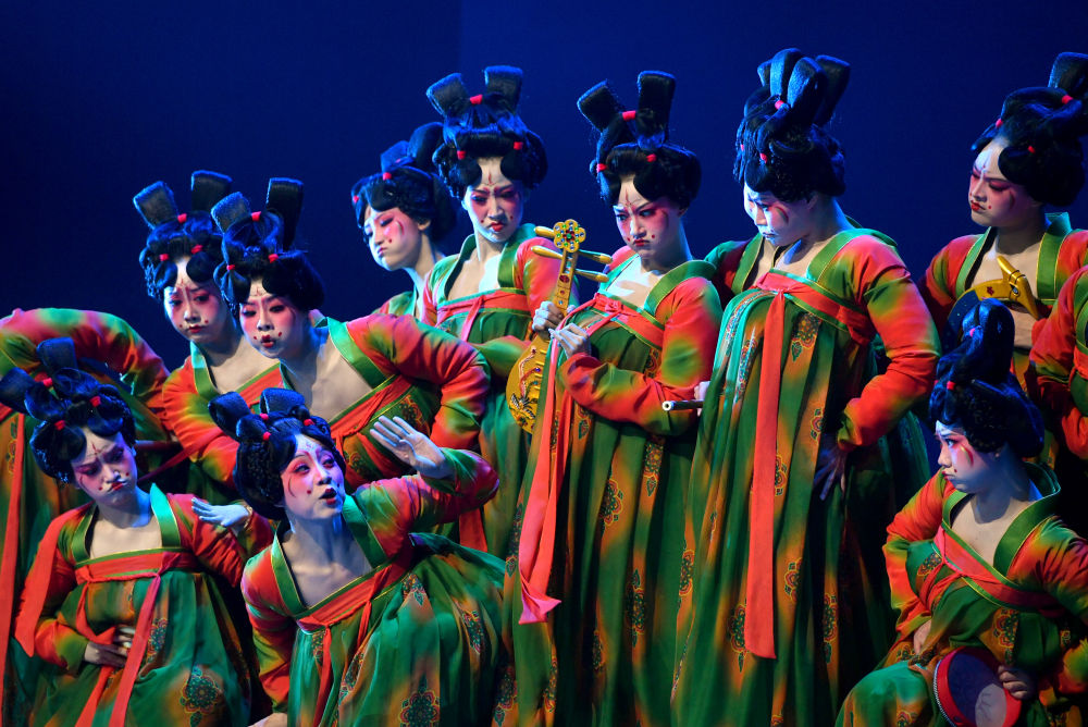 演员在第十二届中国舞蹈“荷花奖”古典舞终评演出上表演《唐宫夜宴》(2020年10月16日摄)。新华社记者 李嘉南 摄
