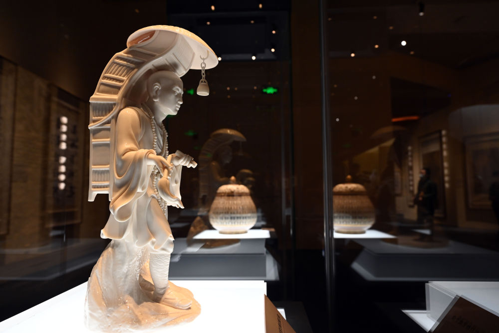 这是在北京中国国家博物馆展出的德化白釉玄奘立像(2023年1月8日摄)。新华社记者 金良快 摄