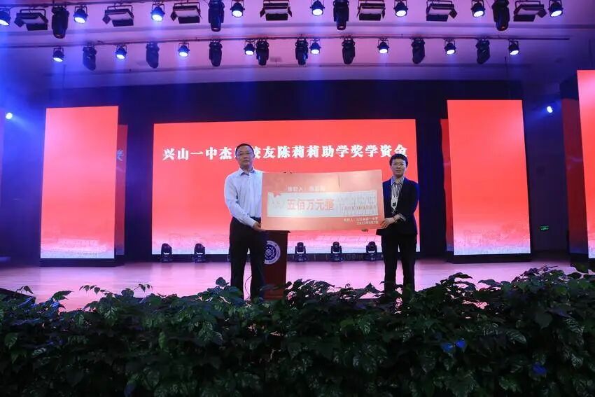 6月3日,兴山一中杰出校友陈莉莉为母校捐赠500万元助学奖学金,帮助和激励困难学生勤奋学习。