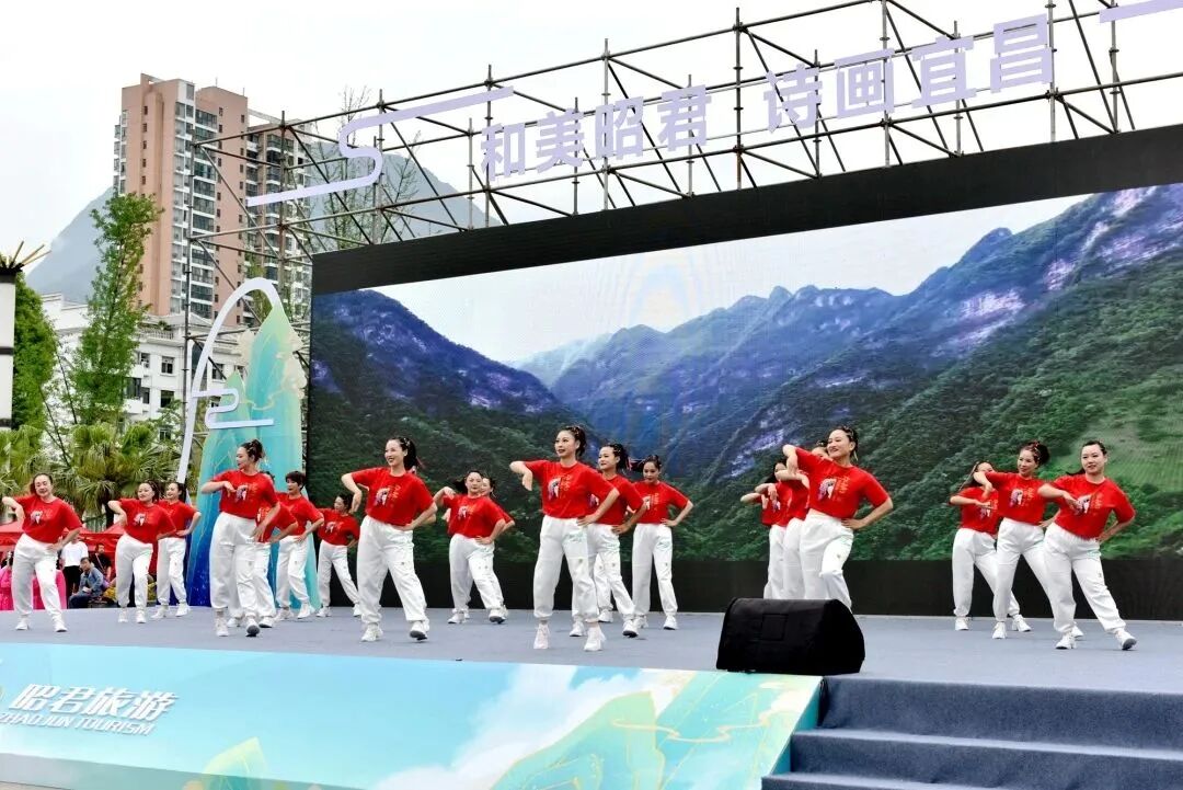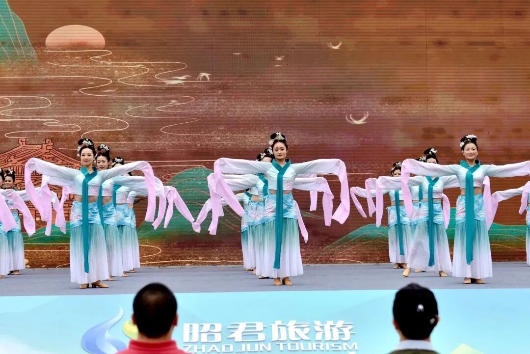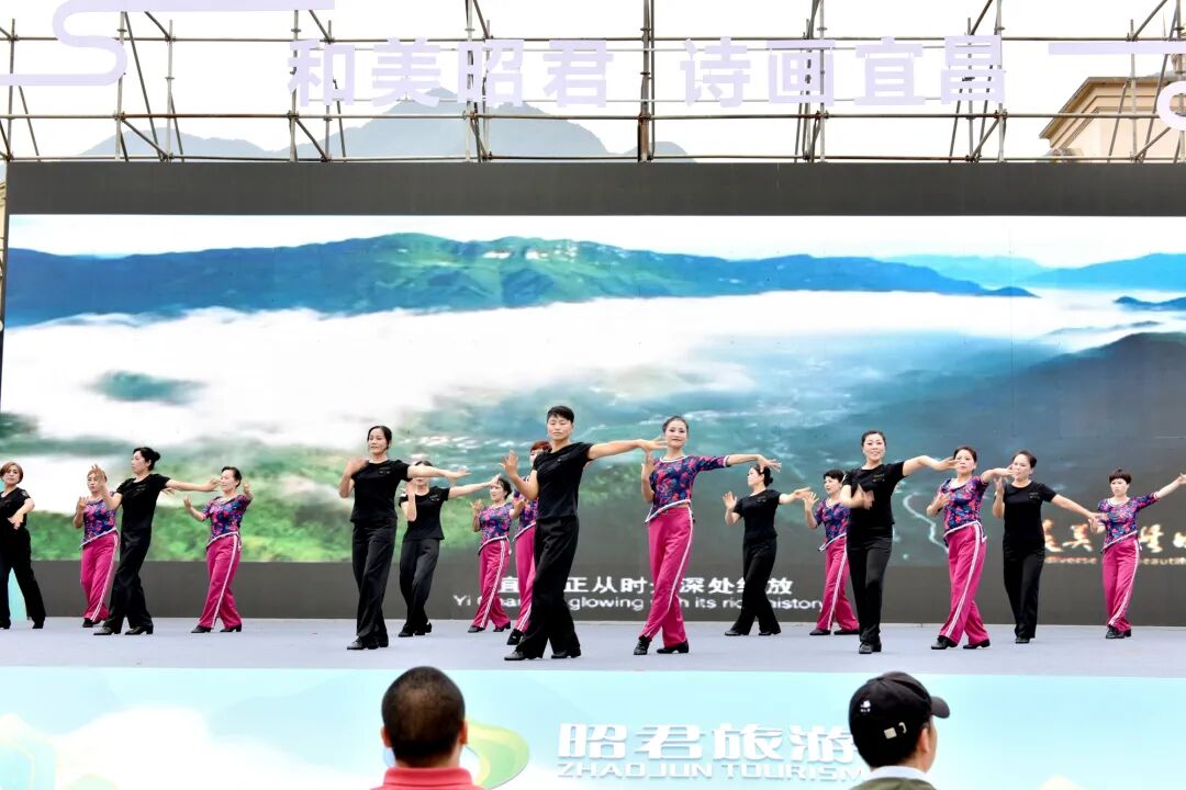 随后,20支参赛队伍迈着轻快的步伐入场,展现出良好的精神风貌。在悠扬的音乐声中,20支队伍逐一登台表演。她们神采飞扬,以优美的身姿、灵动的舞步、甜美的笑容,将对昭君的思念、幸福的心声展现得淋漓尽致。精彩的表演收获了台下观众阵阵掌声。