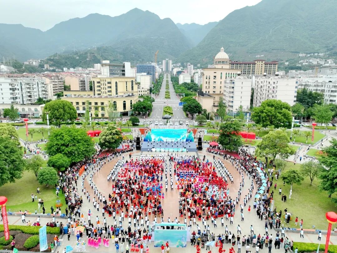 下午三点,“千人同跳一支舞”拉开了活动序幕,兴山县委书记曹宏伟代表中共兴山县委、兴山县人民政府致辞,向远道而来的嘉宾和参赛队员,表示诚挚的欢迎和衷心的感谢。他表示,近年来,兴山县委、县政府锚定“六争创、六中心”奋斗目标,按照“四化同步、振乡兴村、昭君文旅、六创六争、千亿兴发、高铁新城”强县工程基本思路,坚持以人民为中心的发展思想,以昭君文化为核心品牌,着力打造更有温度、更有厚度、更有深度的全龄友好高铁新城。本次举办的广场舞大赛,既是兴山人民对美好生活的现实需要,也是兴山文化事业百花齐放的生动体现,兴山县将以本次活动为契机,开展更多群众喜闻乐见的精神文化活动,持续打响昭君文化品牌,奋力争创全国文明城市,为宜昌建设长江大保护典范城市和打造“世界级宜昌”凝聚澎湃力量。