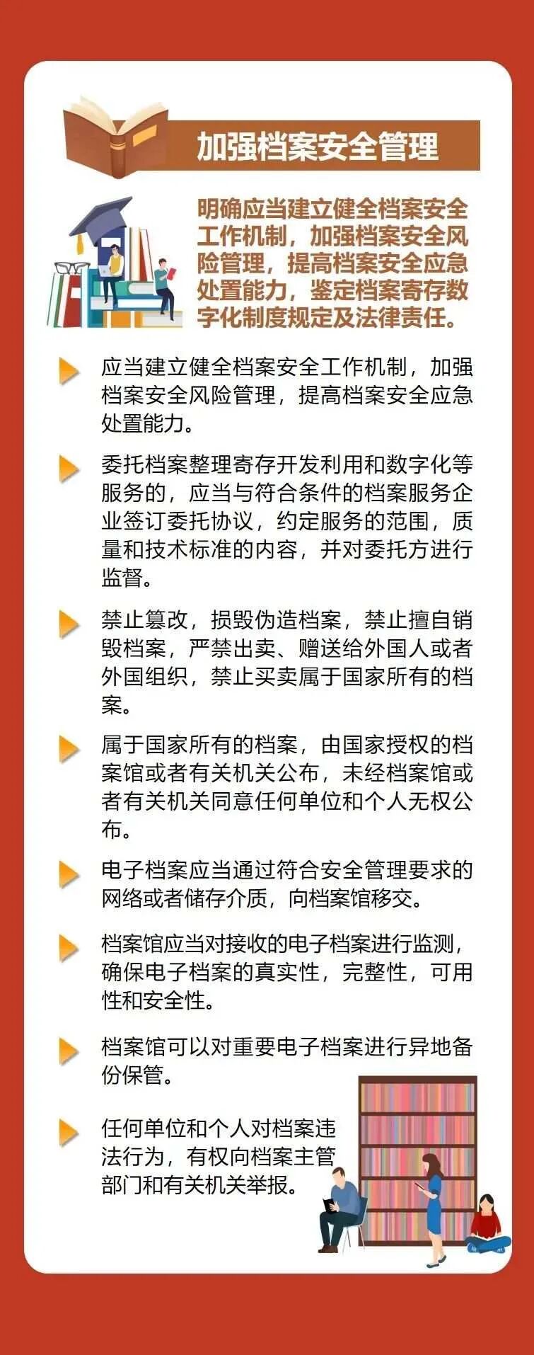 2020年6月20日《中华人民共和国档案法》修订通过并于2021年1月1日起施行这是档案法1988年1月1日施行以来的首次修订有助于进一步发挥档案和档案工作在推进国家治理体系和治理能力现代化中的基础性作用为新时代档案事业高质量发展提供坚强法治保障一图看懂档案法新版内容的5个关键点