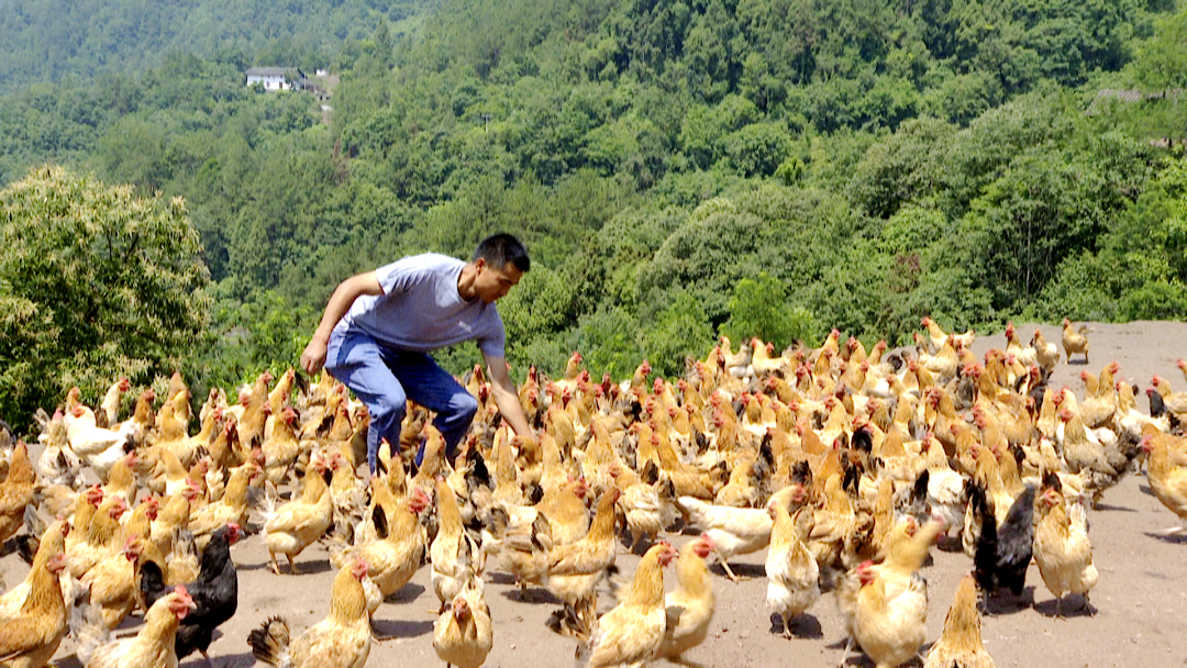 观察鸡苗长势、配置鸡饲料、捡拾土鸡蛋......邓超一大早就忙个不停。在兴山县峡口镇双坪村大山里,邓超与自己的妻子经营着一家生态养殖场,坚持原生态山林散养模式,零饲料添加,只喂蔬菜和谷物,为了让土鸡的口感能够更加出众。