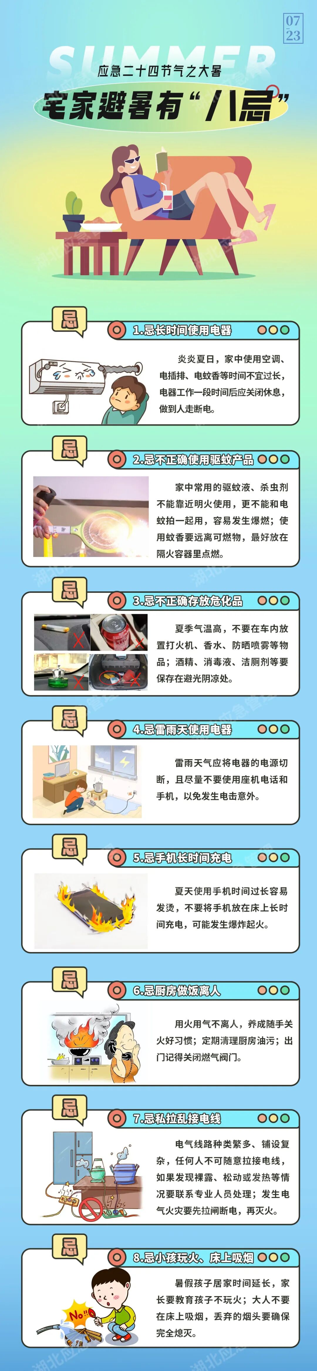 高温天气 宅家避暑也有禁忌! 2023-07-24 09:30 0 高温天气 更多人选择宅家避暑 家庭用电用气量激增 此时更需要防范火灾隐患 宅家避暑有“八忌” 一起来看 ↓↓↓ 来源 | 宜昌发布 编辑 | 郝小芳 编审 | 夏禹 终审 | 吴健