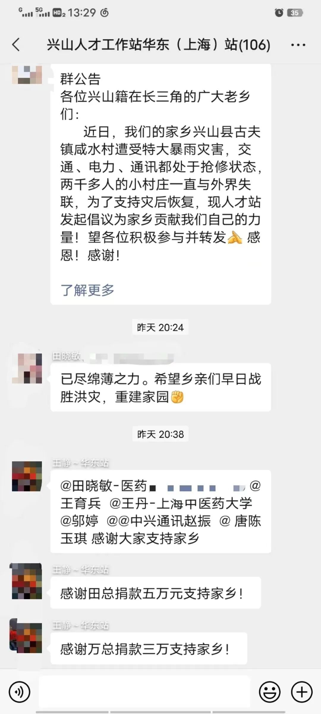 急难有情,情有余兮。8月7日晚,兴山县古夫镇咸水村遭遇罕见大暴雨,交通电力、通讯中断,全村2146人严重受灾。灾情不仅牵动全县人民的心,也牵动了远在上海兴山籍人才的心,他们在群里发出了倡议、进行了募捐,表达出对受灾村民的关怀和挂念。