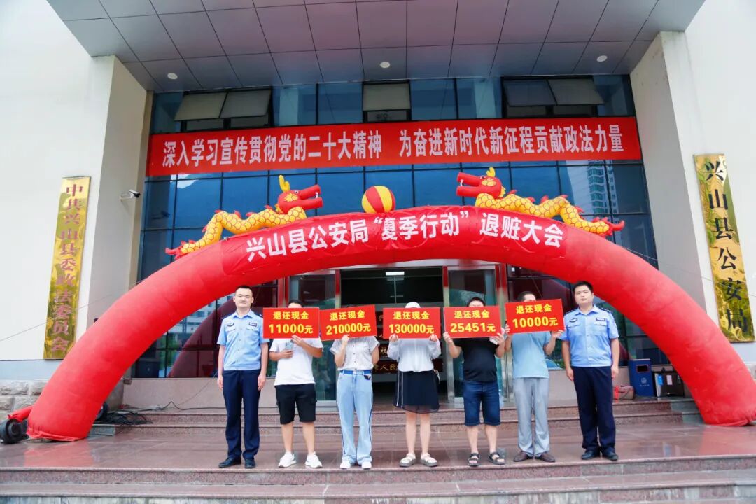 为深入推进平安兴山建设,展示“雷火2023”、“夏季行动”行动成果,展现全警打击电信网络诈骗的坚定决心。8月25日下午,兴山县公安局举行“夏季行动”退赃大会,将近期破获电信网络诈骗等案件追回的赃款返还给受害群众,共计40余万元。
