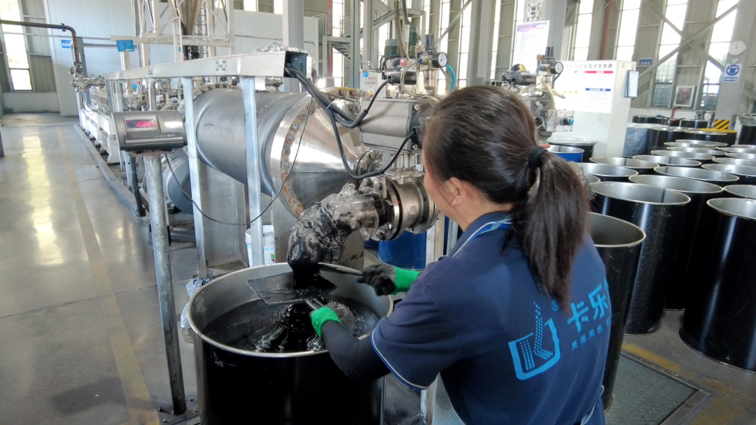 金秋九月,湖北卡乐尔新材料科技有限公司的车间内,黑色、红色、蓝色等多种颜色的色浆从设备中不断地缓缓流出,生产正如火如荼地进行。