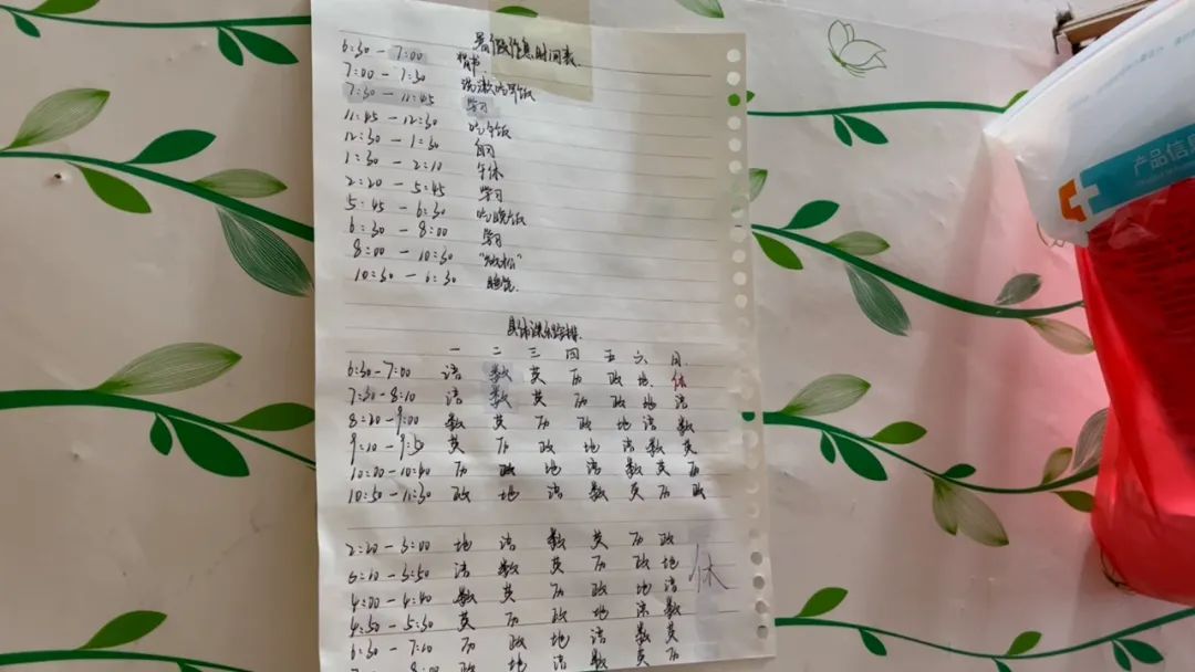 何睿卿制作的暑期作息时间表。王钰琪 摄