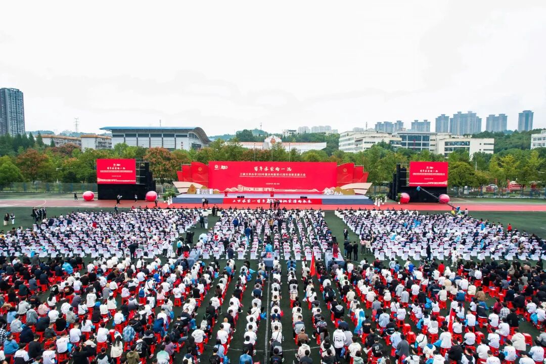 碧波长江向东流,巍巍三峡立无双。长江之滨、西陵峡畔,10月3日,近万名三峡大学校友从天南地北奔赴母校,与在校四万多名师生共襄三峡大学办学100年暨本科教育45周年盛典。庆典上,三峡大学以“百年求索向一流”为主题,梳理百年文脉,展示辉煌成就,砥砺加快建设“双一流”高校奋进求索的新篇章。