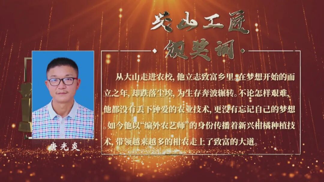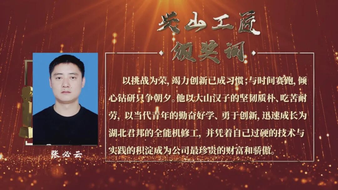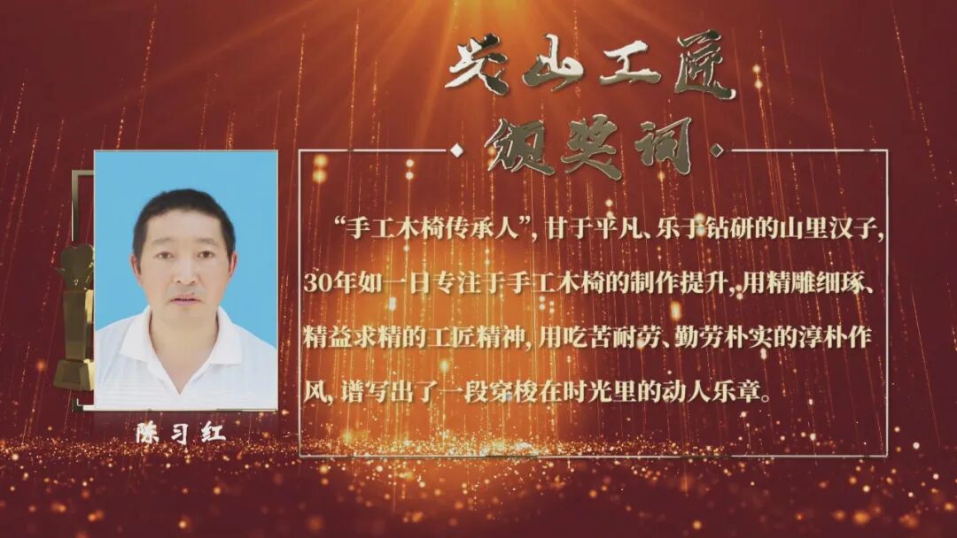 活动现场发布了首届“兴山工匠”名单,观看“兴山工匠”获得者事迹短片。兴山县手工木椅传承人陈习红、兴山县柑橘产业协会会长唐光炎、湖北君邦新材料公司职工张必云、兴山县兴发汽运有限公司修配工彭安富、国网兴山分公司职工舒文、白沙河化工厂主任工程师张保民、湖北昭君旅游文化发展有限公司高级技师熊爱、兴昌磷矿副主任工程师牛波、湖北泓博锐建筑公司职工王祖元、昭君山庄厨师长李太军获“兴山工匠”荣誉称号。
