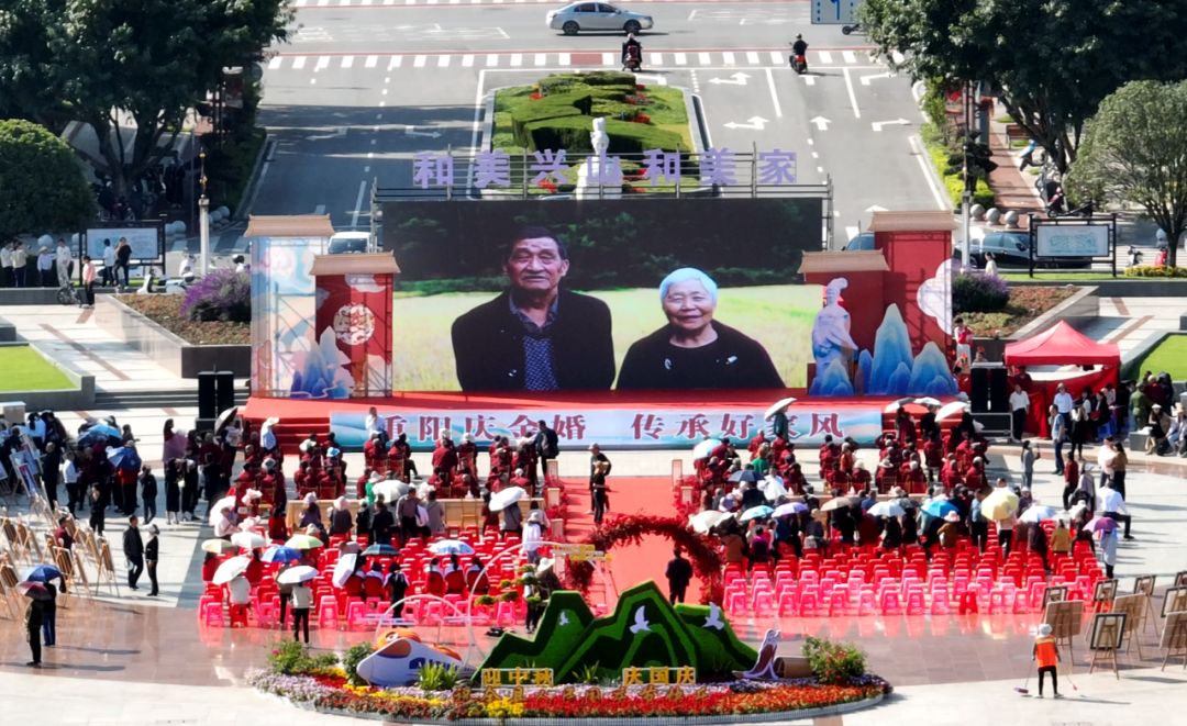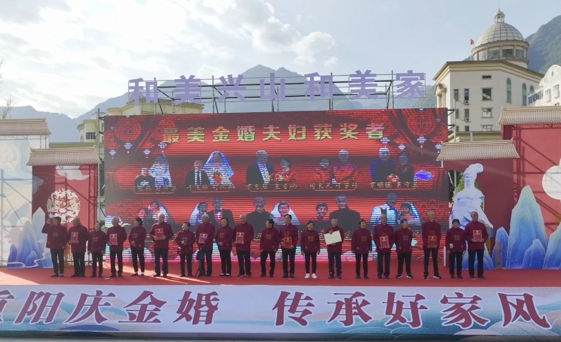 重阳节期间,兴山县为金婚夫妇补拍婚纱照,开展门球比赛、文艺汇演等系列庆祝活动,并发布“和美兴山·和美家”家风品牌,以此来引导年轻人树立正确的婚姻观和家庭观,呼吁全社会以好家风淳民风清政风正党风,用“家庭小美”撬动“乡村大美”,共建和衷共济、政通人和的“和美兴山”。