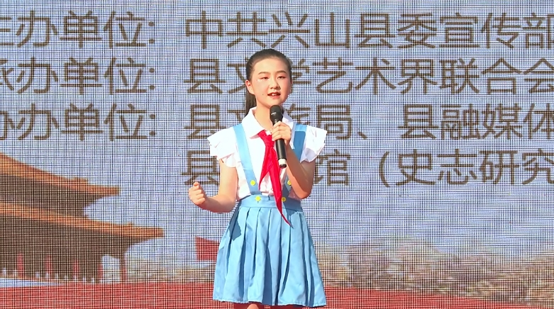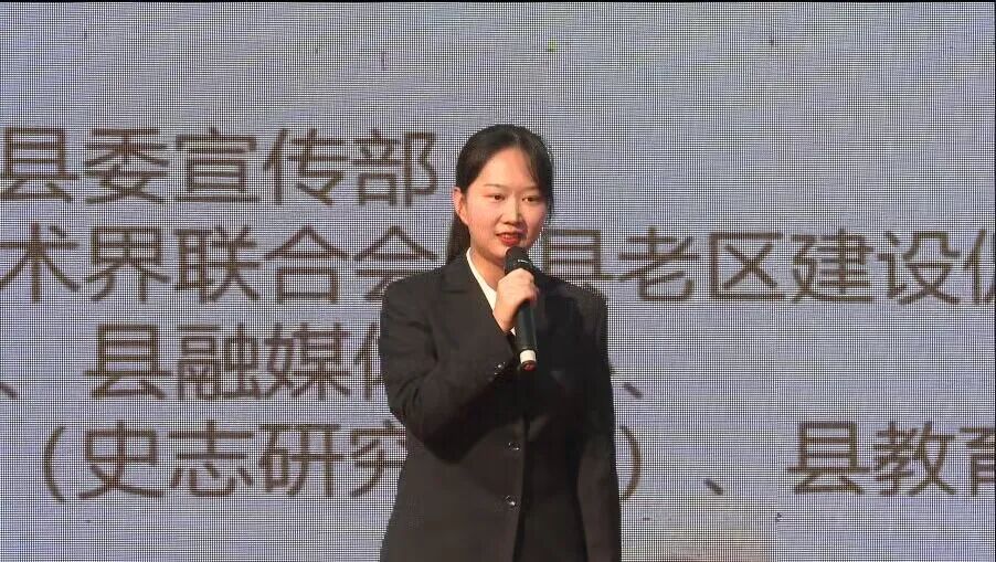昭君村景区讲解员李思蕊说:“我演讲的题目是《 “信仰的力量”永放光芒》,讲述的是共和国“第一号烈士”的故事。我认为新青年一定要做有力量、有信仰、有担当的人,传承红色基因,弘扬老区精神。”