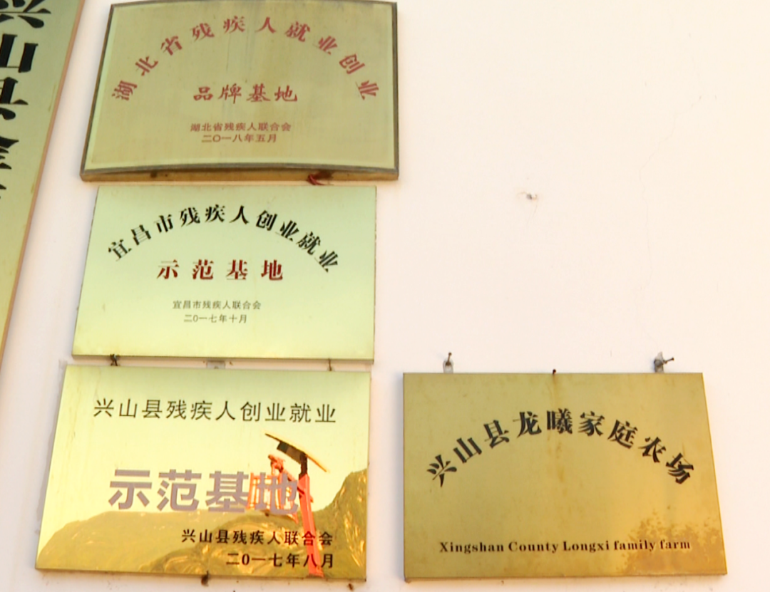 袁剑的基地外墙上,挂着湖北省残疾人就业创业品牌基地、宜昌市残疾人创业就业示范基地等荣誉牌。这些年,随着种植冬雪桃的收益越来越好,袁剑开始带领县里的残疾人和县内外其他农户共同发展。