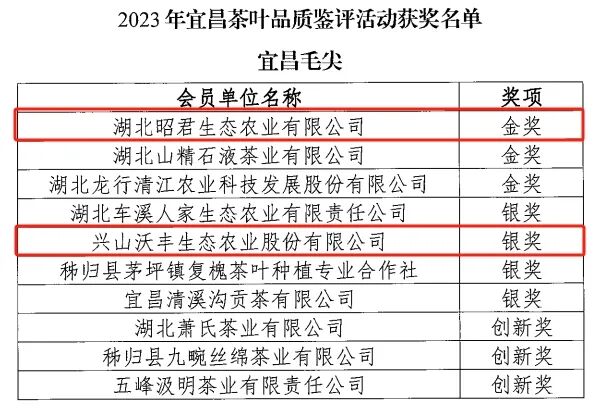 11月20日,由兴山县茶叶龙头企业选送的茶样在2023年宜昌茶叶品质鉴评活动中,荣获“宜昌毛尖”品类鉴评1个金奖和1个银奖。