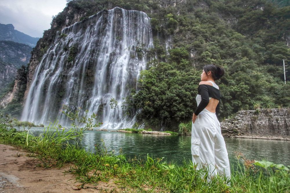 2023年8月19日,湖北省兴山县朝天吼景区。一位武汉姑娘被高岚神话般的瀑布惊艳了。
