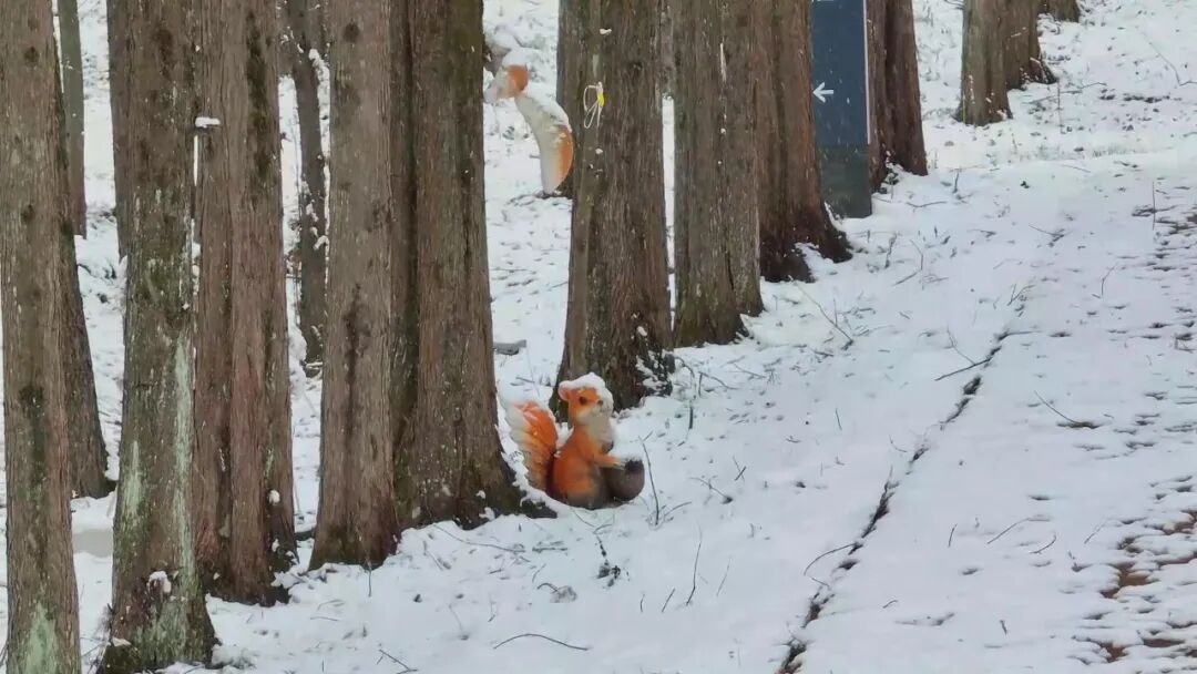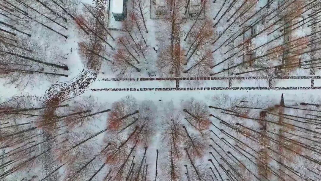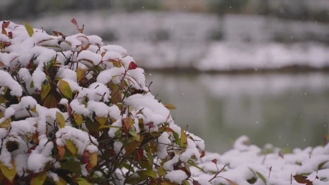 雪花洋洋洒洒地从天空中飘落,留下美好与纯净,秋色与冰雪冬白转瞬切换。从此,一夜间色彩斑斓的山林就像是披上了薄薄的白纱,暖色调向着冷色调渐变,呈现出朦胧的画面。轻柔的雪花坠入山间、林间,让满山的斑斓和飘散的雪白撞了一个满怀。