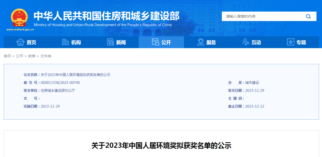 按照《住房和城乡建设部关于印发中国人居环境奖申报与评选管理办法的通知》,住房城乡建设部对2023年中国人居环境奖申报项目进行评审,今日起,将评审结果进行公示。